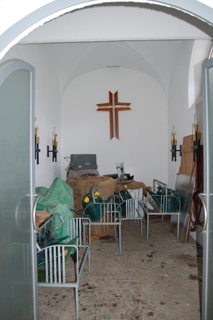 Weiters wurde ein überkonfessioneller Verabschiedungsraum, ein Sozialraum und ein öffentliches WC vorgesehen. Für die zwei nicht mehr gebrauchten Verabschiedungsräume empfehlen wir die Umwandlung in einen überkonfessionellen Meditationsraum und in eine kleine Kerzenkapelle.